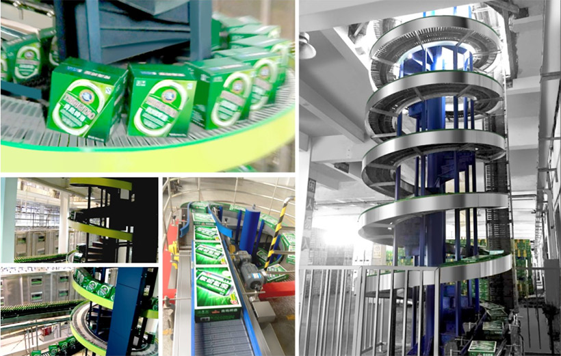 1、本机主要适用于啤酒、饮料等用纸箱或塑箱包装的产品进行上升或下降垂直输送之用。 2、可实现连续无间断提升、下降,节约空间、提高工作效率。 3、输送量大、输送安全、稳定可靠、降低运行噪音,简易维修方式、节省维修成本。 4、结构简单,使用模块式转弯输送带,高度、层数、速度可依工艺要求定制,设备布局灵活,可实现不同方位进出口要求。